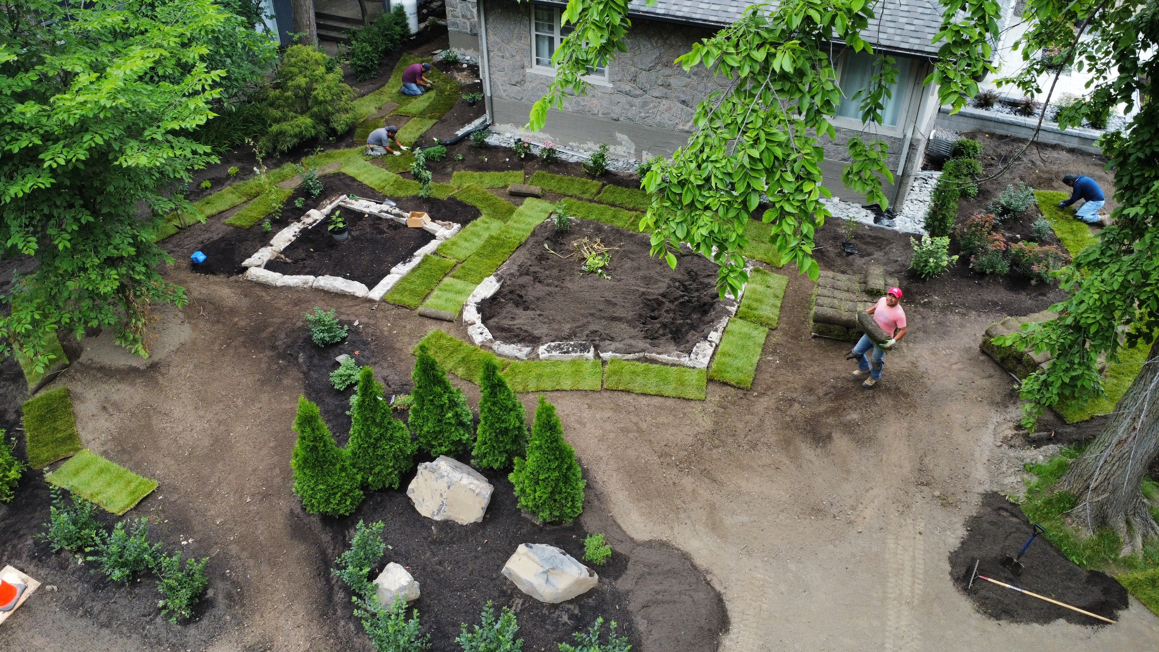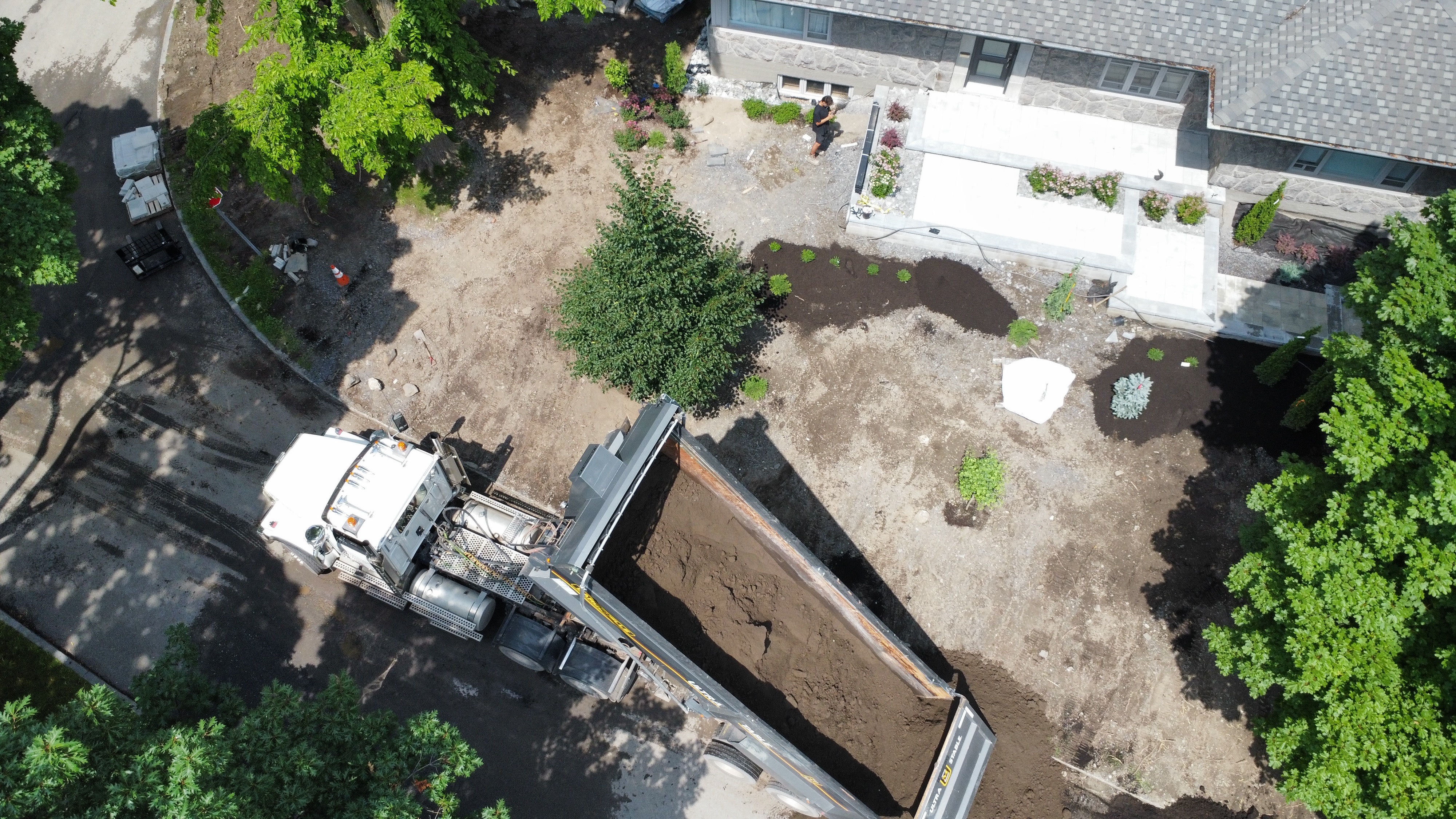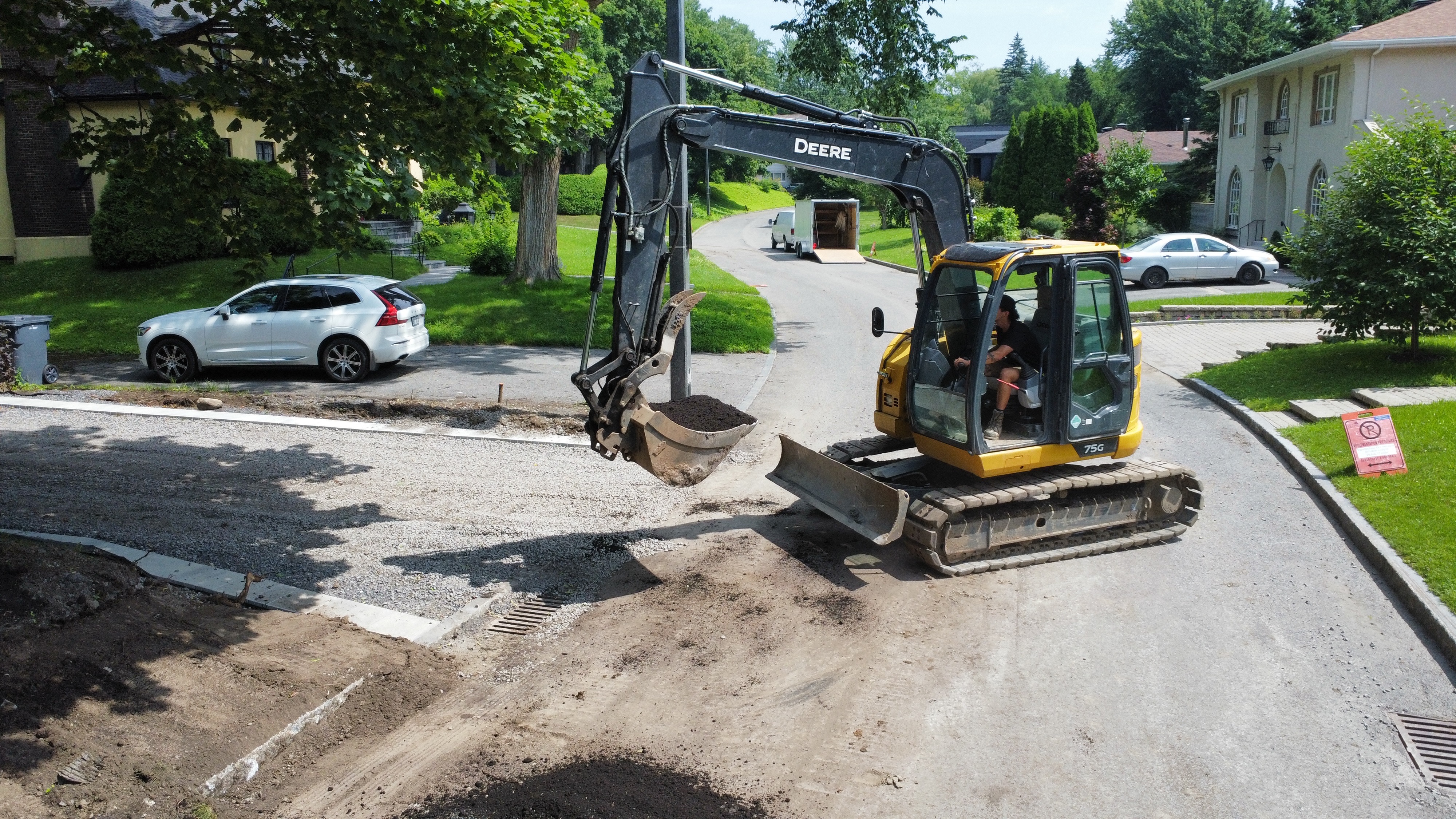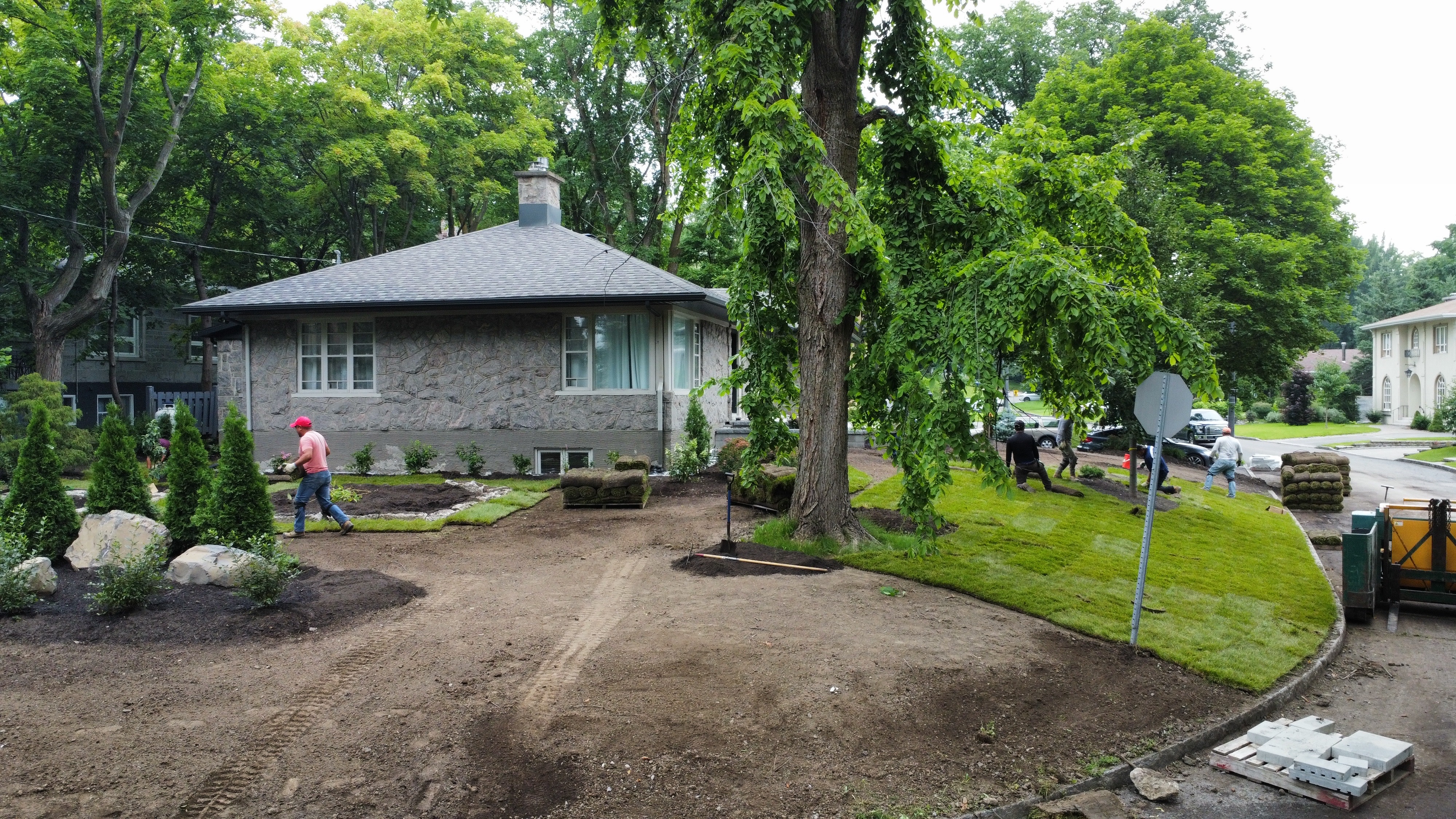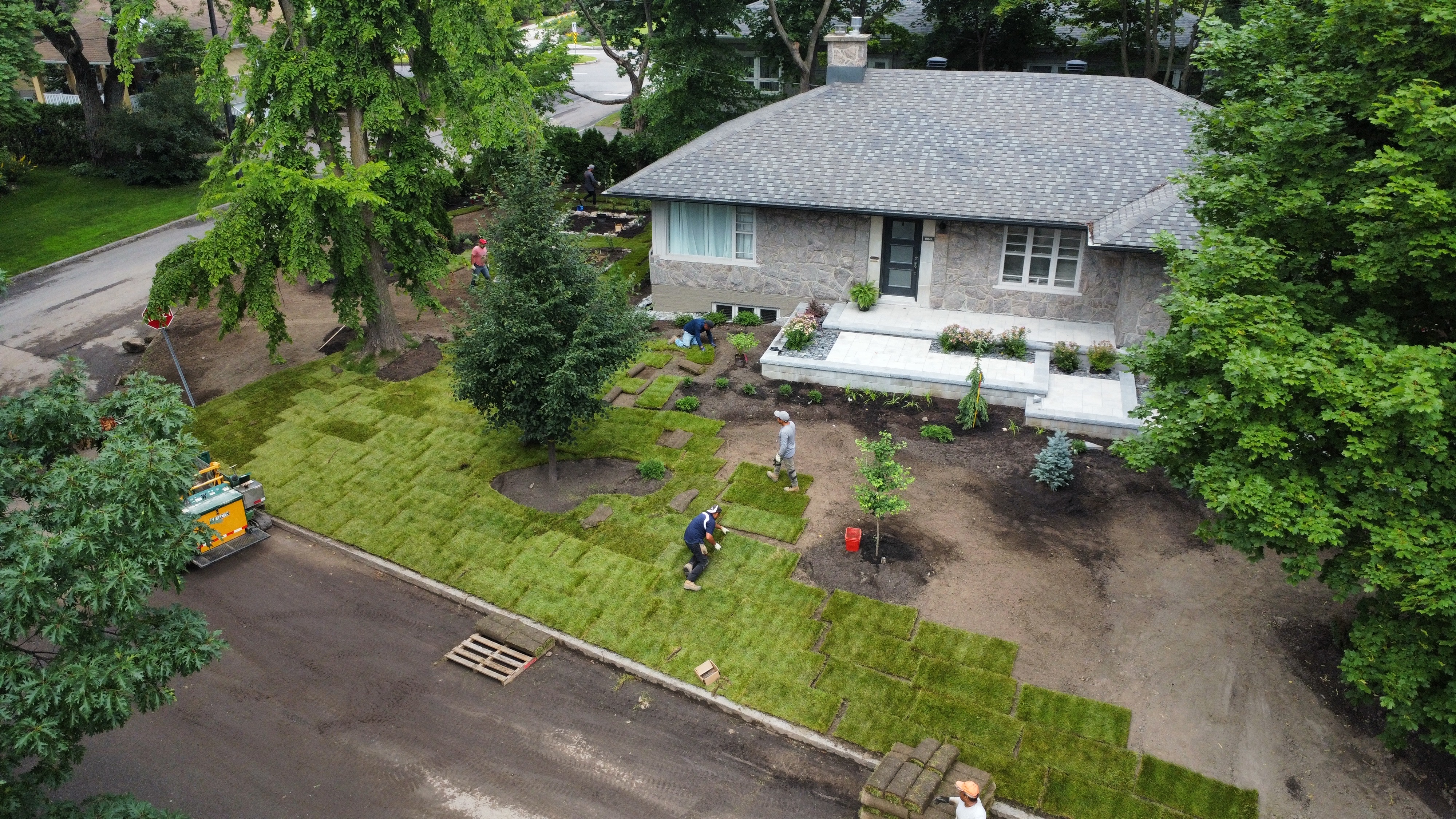 Dans ce projet résidentiel, nous avons métamorphosé l'espace extérieur de A à Z. L'entrée en pierre accueille chaleureusement, tandis que la pose de goudron assure un stationnement pratique. L'aménagement paysager a été soigneusement orchestré avec la pose de tourbe, créant une pelouse luxuriante, et l'ajout stratégique d'arbres et de fleurs pour une touche naturelle et colorée. Chaque étape de ce processus a été pensée pour offrir une harmonie parfaite entre fonctionnalité et esthétique, transformant ainsi cet espace en une résidence accueillante et élégante.