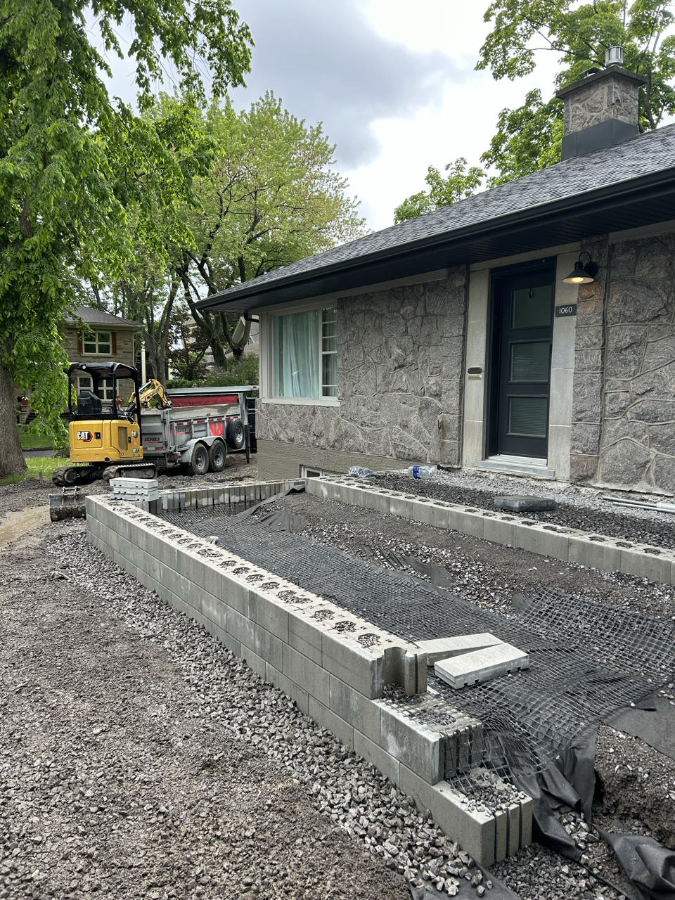Transformez votre résidence avec notre expertise : de l'entrée en pierre à la pose de goudron et l'aménagement paysager, nous créons un espace extérieur alliant élégance et praticité, faisant de votre maison un havre de beauté naturelle. Contactez-nous dès aujourd'hui !